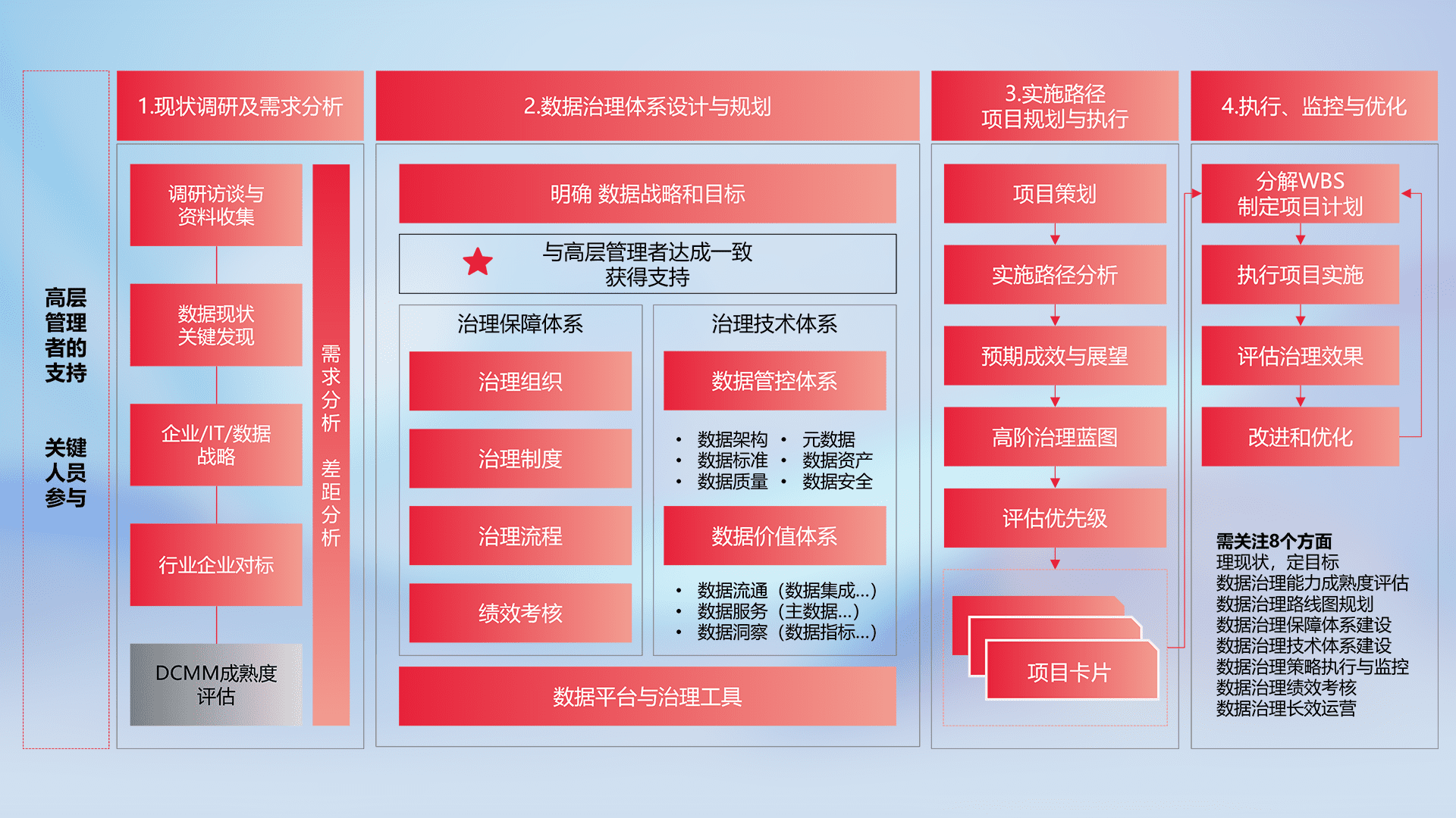 制定并执行统一的数据标准,,,,规范数据定义和格式,,,,消除冗余和不一致性,,实现跨部门和跨系统的数据一致性,,,,为企业提供标准化的数据基础。。。。
